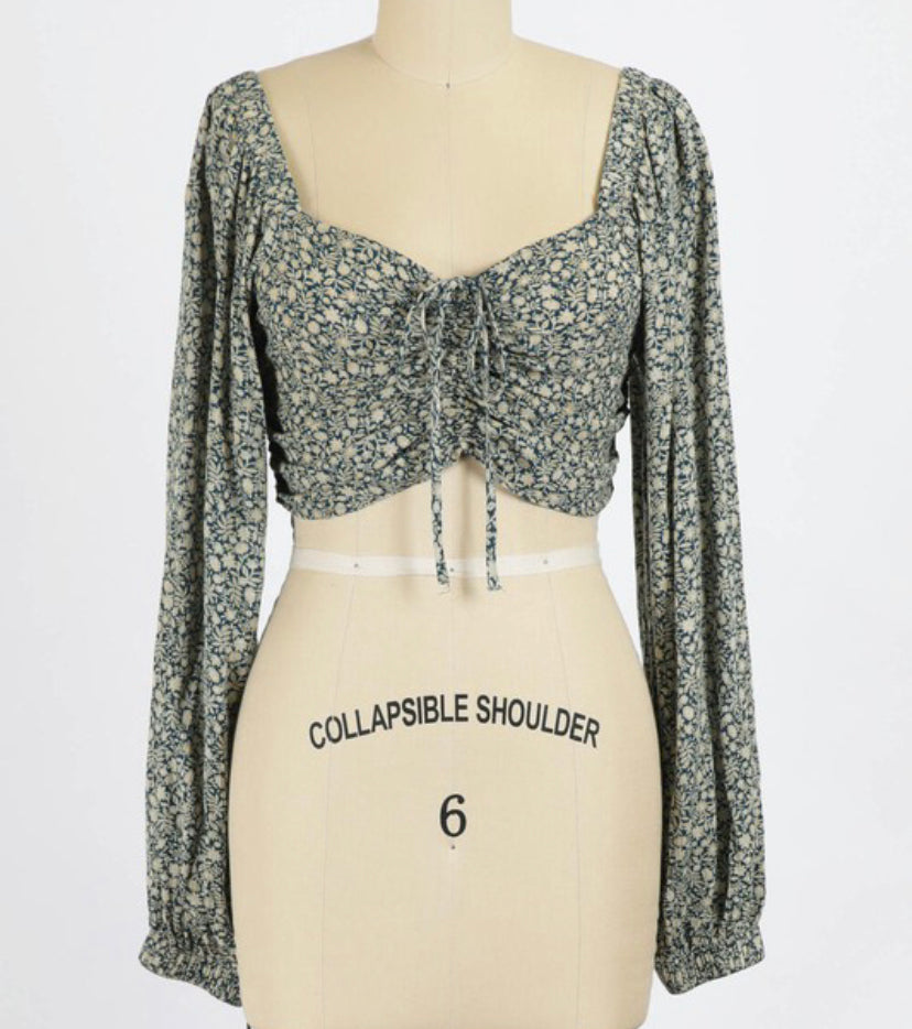 Washed floral printed long sleeved top. 100% rayon, made in USA.